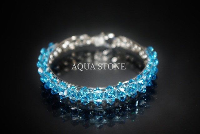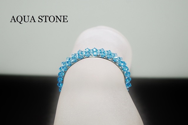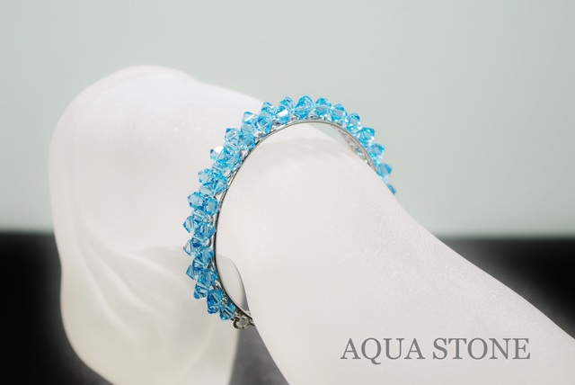 アクアマリンブルーがとても鮮やかなキラキラブレスレットです。