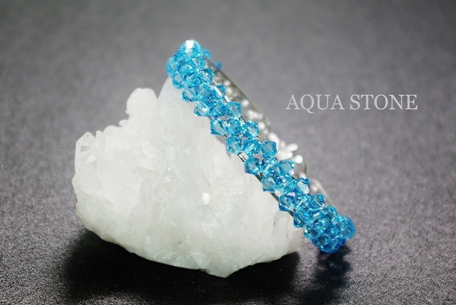 ロジウムバングルにスワロフスキー#5301を編み込んだブレスレットです。