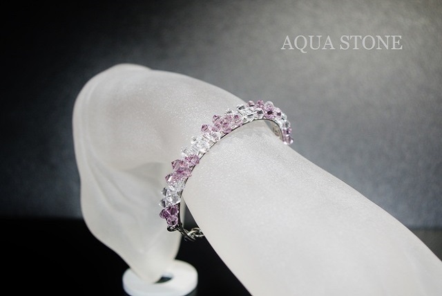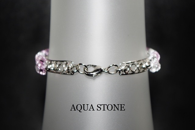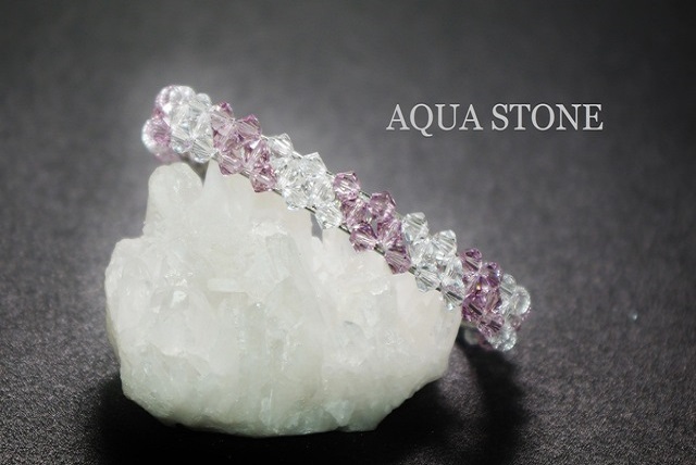 スワロカラーはライトアメジストとクリスタルのコンビカラーで、ストライプ模様に編み込んであります。
