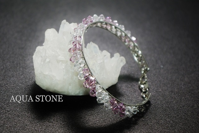 ロジウムバングルにスワロフスキー#5301を編み込んだブレスレットです。
