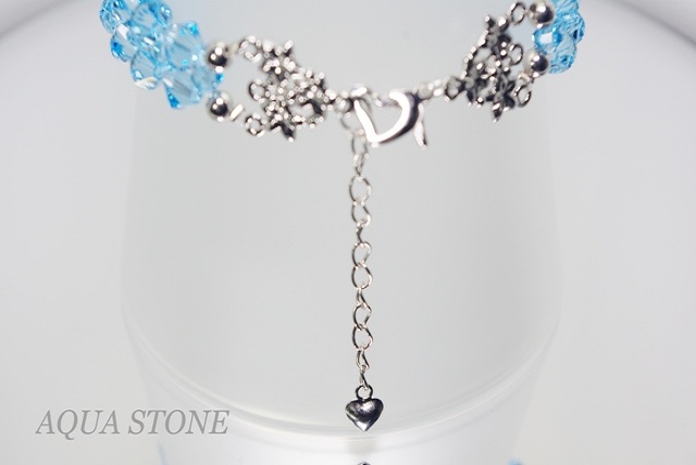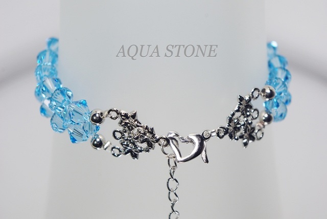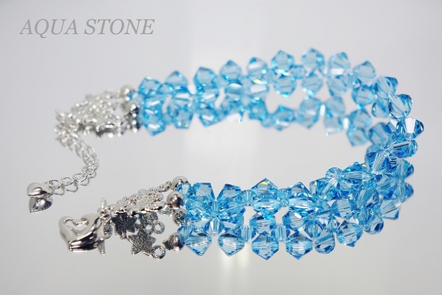 素材はスワロフスキー#5328アクアマリンカラー6mmと4mmのソロバンタイプです。