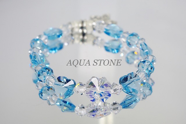 スワロフスキークリスタル #5742 アクアマリン(ハート)×6 #5752 クリスタルAB(クローバー)×1 #5328 クリスタル(ソロバン)×12 #5040 アクアマリン(ブリオレットカット)×4