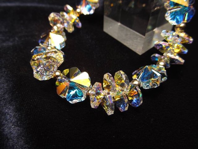 オーロラクローバーの虹のような輝きがとても素晴らしいゴージャス系ブレスレットです。 オクタゴンはあらゆる角度から虹色の光を放ち、ブレスレット全体が光りの洪水状態です!