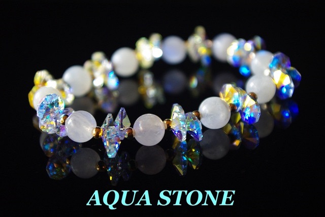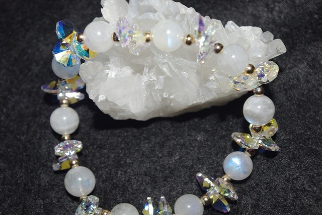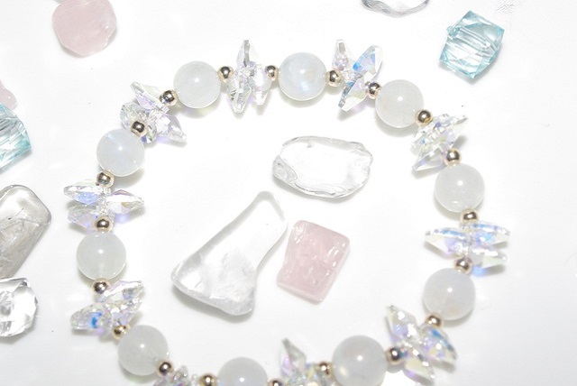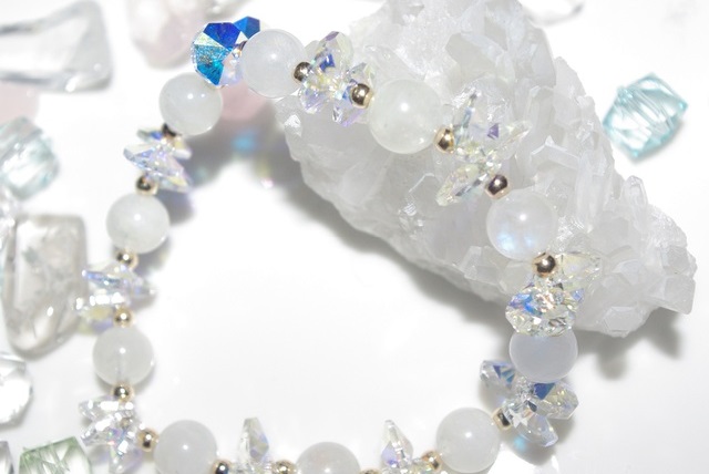 素材は8mmのロイヤルブルームーンストーンとスワロフスキークリスタルを使用しました。