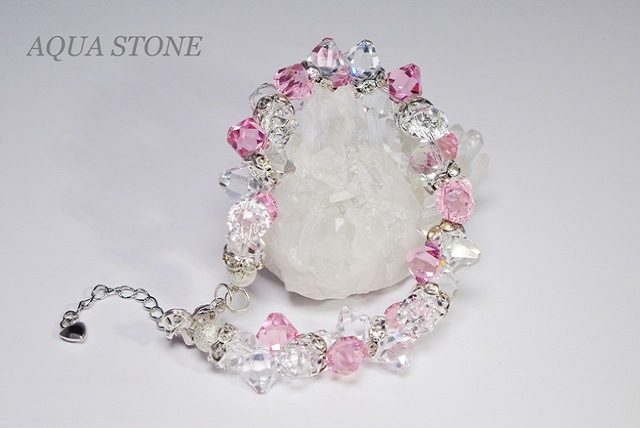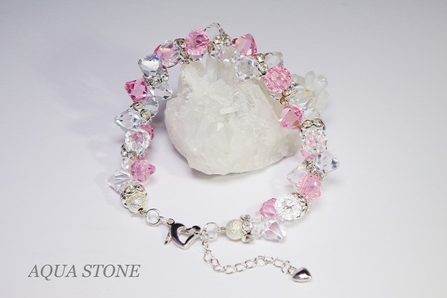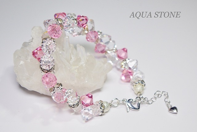 クリアホワイトとライトローズの色合いがとてもかわいくて、スワロフスキークリスタルの