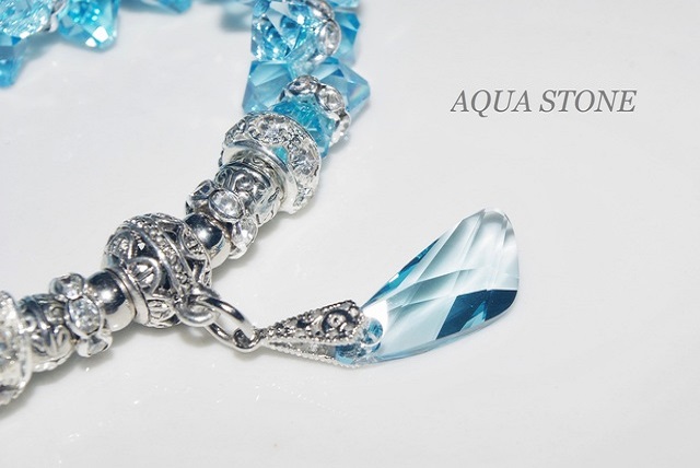 B アンティーク調チャーム ⇒ SWAROVSKI クリスタルの同色アクアマリンのチャームに変更して