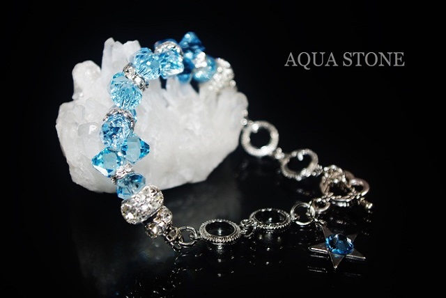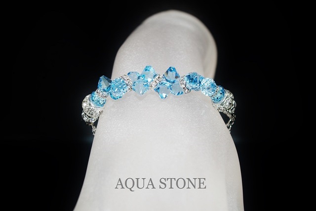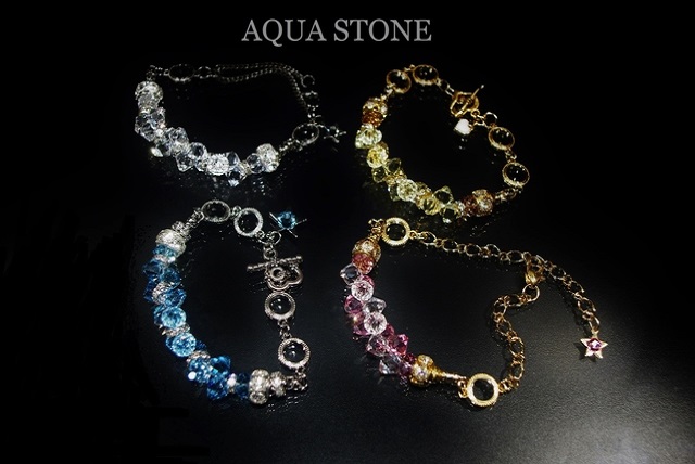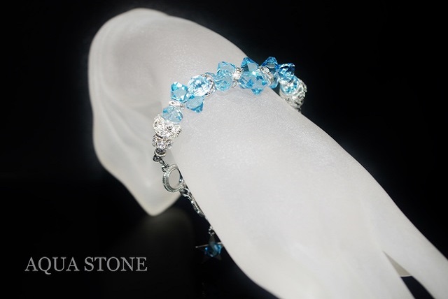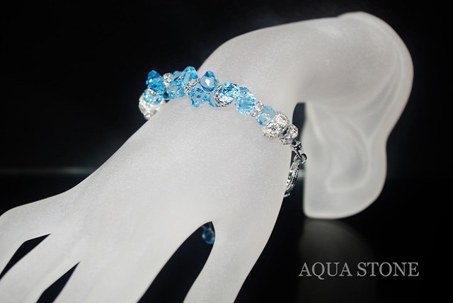 スワロフスキーは先日入荷した#6301アクアマリンで、こちらはコンビカラーにしないでアクアマリン一色にしましたが、