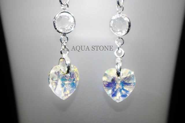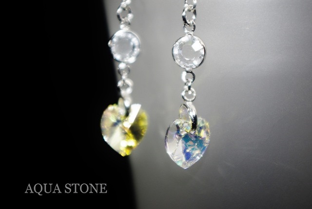 ハートのサイズは10mm程度ですが、輝きは半端ではありません! 耳元で揺れるオーロラカラーをぜひ実感してみて下さい。