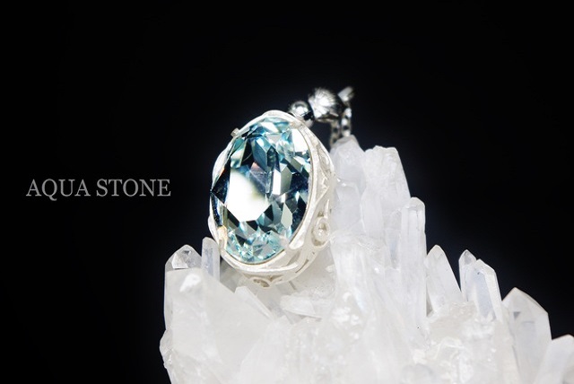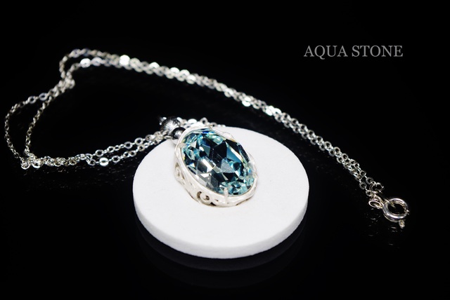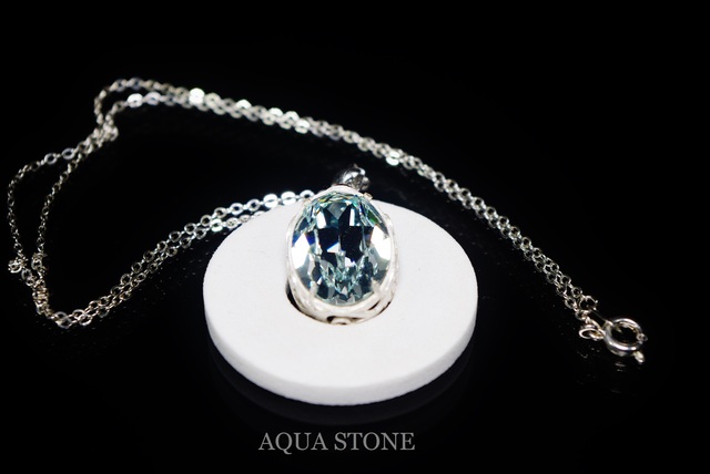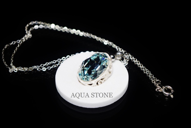 スワロフスキー#4120アゾレの18mm×13mmを使用したアクアブルーカラーのネックレスです。