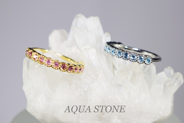写真のカラーはロジウムリングがアクアマリン、ゴールドリングがライトローズとなります。