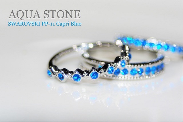 このリングに使用のスワロフスキーはPP-11 カプリブルーです。