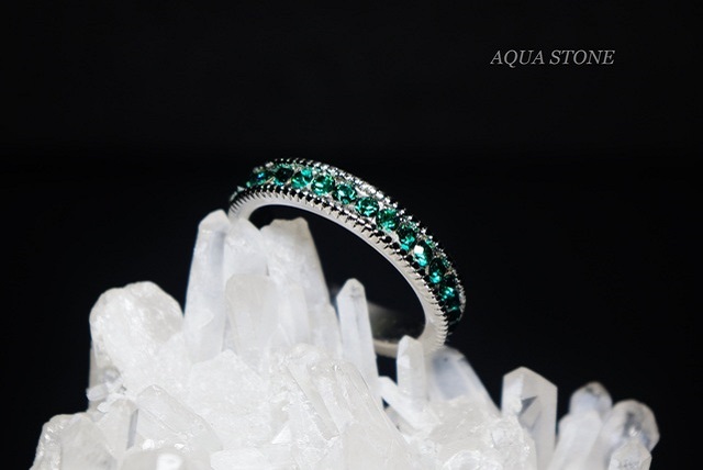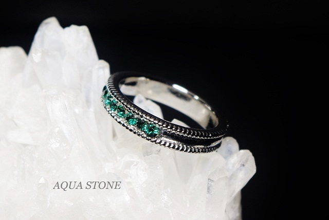 写真のリングは、クリスタルカラー「エメラルド」を使用しています。