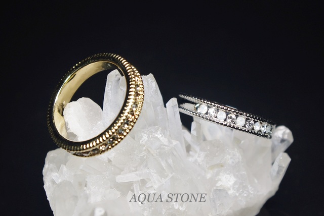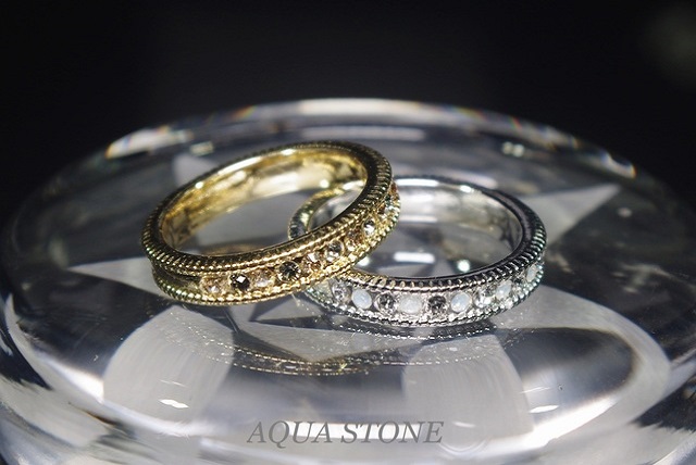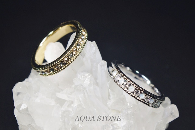 写真のリングは、ゴールドリングがブラックダイヤとクリスタルの組み合わせです。