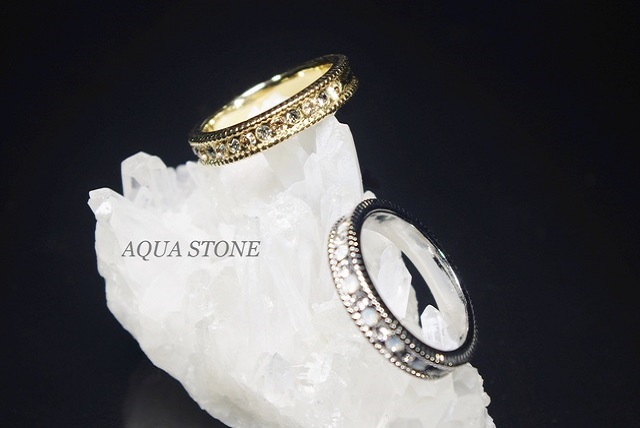 ロジウムリングは、ホワイトオパールとクリスタルの組み合わせです。